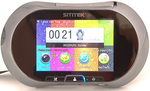Дверной видеоглазок Sititek GSM — камера, совмещенная со звонком и панель с сенсорным дисплеем размером 3,5". Данная модель способна передавать информацию о посетителях на мобильный телефон хозяина по каналам GSM. Вы будете знать о том, кто приходил к вам в гости, даже будучи за тысячи километров от дома. Система имеет режим автоматической съемки по сигналу датчика движения с сохранением фото- и видеофайлов на карту памяти.