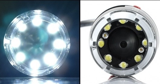 В корпусе вокруг объектива установлены 8 ярких светодиодов с белым свечением. Подсветка предназначена для традиционного наблюдения непрозрачных предметов (в падающем свете). Светодиоды отличаются низким энергопотреблением и качественным светом, питаются от компьютера через USB-порт и не требуют дополнительного питания.