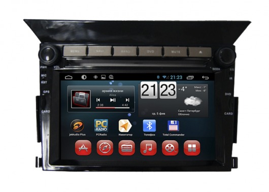 Штатное головное мультимедийное устройство позволяет прослушивать аудиофайлы различных форматов, просматривать видео (в том числе в HD-формате) и фотографии как с внутренней памяти устройства (8 Гб), так и с внешних носителей и  SD карт памяти. Вы также можете слушать аналоговое или интернет-радио или смотреть видео онлайн. Или подключить цифровой ТВ-тюнер, чтобы смотреть цифровые каналы прямо на экране устройства. А еще у вас есть возможность подключить DVD-привод и смотреть фильмы и управлять DVD-меню прямо с сенсорного экрана магнитолы.