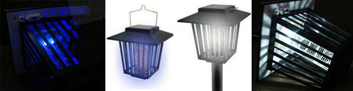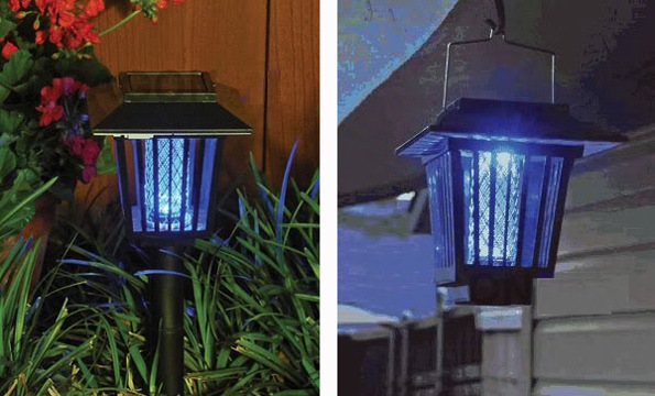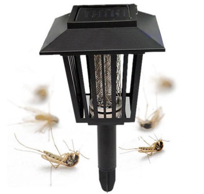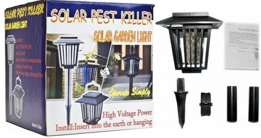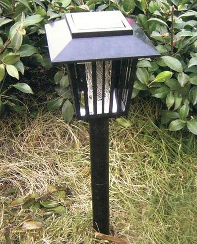 Уничтожитель комаров и кровососущих насекомых Садовый приманивает их светом УФ-ламп и убивает разрядом тока. Кроме уничтожения насекомых, может выполнять функцию садового фонаря, в форме которого он выполнен. Работает полностью автономно от 2-х встроенных аккумуляторов, заряжающихся от солнечной панели на верхней стороне уничтожителя.