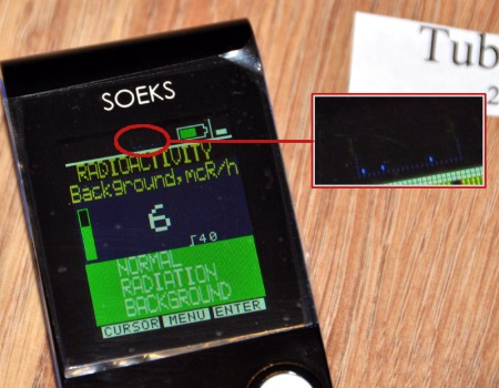 • в виде текста: на дисплее отображается информация о текущем уровне радиоактивности, причем в сообщении будет указано, нормальный ли уровень радиации или же он превышен.