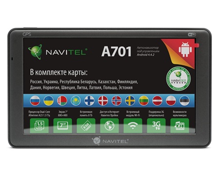 Портативный автомобильный gps навигатор Navitel A 701 имеет емкостный 7-дюймовый экран, FM-трансмиттер, поддерживает навигационное программное обеспечение — Навител 9.2 и предустановленные карты России, Украины, Республики Беларусь, Казахстана, Финляндии и других стран Европы.