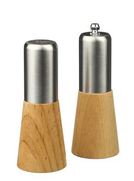 Стильный набор состоящий из деревянной солонки и мельницы для перца, станет прекрасной деталью интерьера на любой кухне.