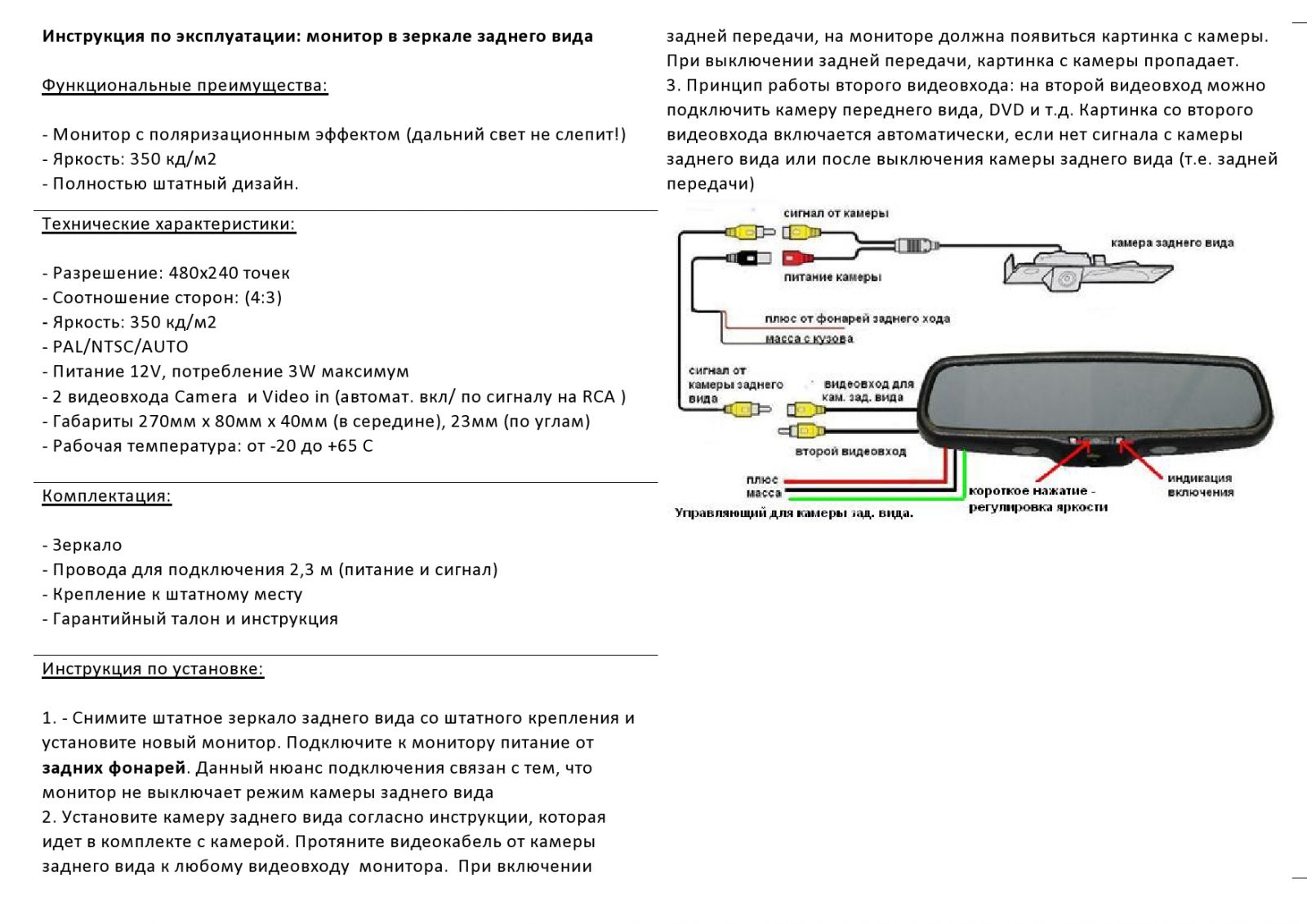 Зеркало имеет 2 видеовыхода, с помощью которых возможно подключить парковочную камеру заднего вида,  фронтальную или видеорегистратор.