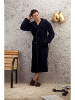 Махровый халат с внешней велюровой стороной (имеет приятный приглушенный отблеск, противостоит образованию затяжек), а внутренняя сторона из петельчатой махры, создающей легкий массажирующий эффект. Двухсторонний капюшон, широкий манжет, полноценные карманы, оптимальная длина.