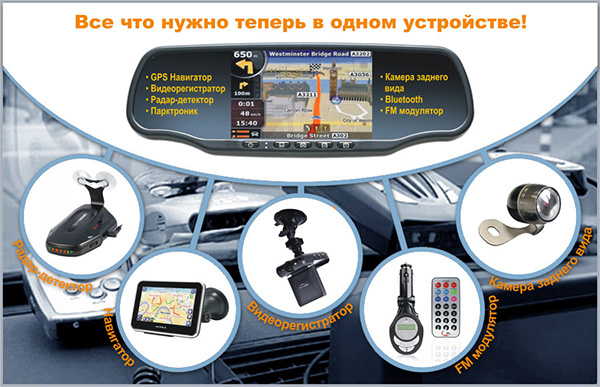 То есть, можно заплатить «круглую» сумму и купить все эти 10 устройств по отдельности, по возможности рассредоточив их на приборной панели и лобовом стекле А можно купить только Arena Pro 9000 S и установить его на место штатного салонного зеркала, не переплачивая. Выгода очевидна.