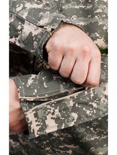 • Рукава и брюки снизу с внутренними манжетами, манжеты брюк заправляются в обувь.