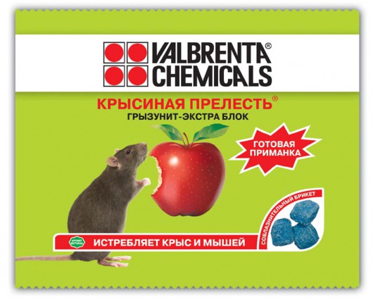 Вопросы и отзывы про Приманка для мышей и крыс VALBRENTA CHEMICALS ГРЫЗУНИТ-ЭКСТРА БЛОК "Крысиная прелесть", 100 г