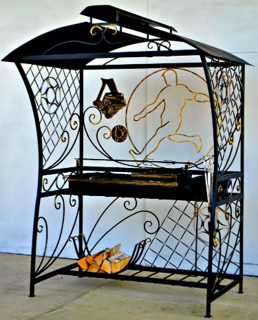 Кованый мангал для дачи с крышей "Футбол-Локомотив" — превосходный вариант для профессионалов, настоящих ценителей дачного отдыха и заядлых болельщиков "Локомотива". Этот большой стационарный мангал с крышей, изготовленный из высокопрочного металла с применением ручной художественной ковки, сочетает в себе практичность, функциональность и оригинальный дизайн. Он станет той самой "изюминкой", которая выделит ваш дачный участок среди прочих.