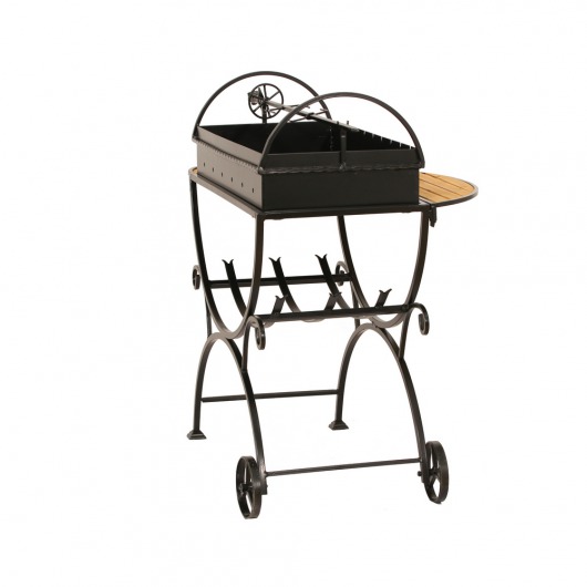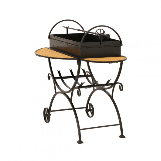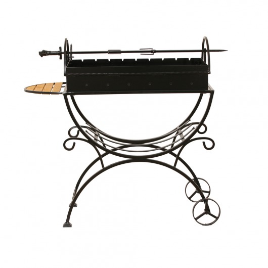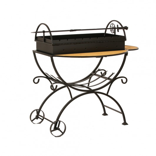 И это не единственные преимущества дачного кованого мангала МСДК. Несмотря на изящность и компактность, его конструкция отличается особой прочностью. Стойка усилена элементами ручной ковки, а ящик мангала изготовлен из жаростойкой стали толщиной 2 мм, которая выдерживает высокие температурные нагрузки в течение долгого времени и не деформируется. А спереди и сбоку жаровни расположились 2 удобных деревянных столика (один из них съемный), которые можно использовать как подставки для посуды или вместо разделочных досок.