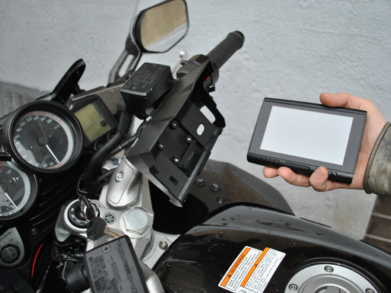 В комплекте поставки есть удобное крепление для быстрой установки навигатора на мотоцикл. Оно не требует никаких доработок, монтаж происходит одним движением руки. Питание подведено к держателю, поэтому gpsнавигатор не разрядится в пути. Дополнительно у модели есть и аккумулятор для автономной работы.