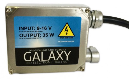 Бюджетный вариант блок розжига ксенона Galaxy - это устройство, представленное в виде балласта, которое отвечает за розжиг ксеноновой лампы и поддержание напряжения. Работает на переменном токе. Блок является своеобразным трансформатором, который на старте преобразует низкий ток в высокий - до 25кВ, что и является пуском для мгновенного розжига инертного состояния ксеноновой лампы.