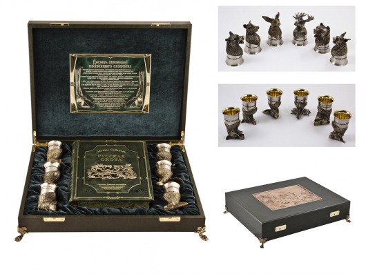 Подарочный набор из стопок-перевертышей и книги "Русская охота" поможет выразить ваше уважение к другу, родственнику или коллеге. Личные стопки с именной надписью — знак успешности и престижа, который придется по душе любому охотнику.