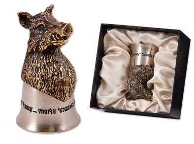 • Основание стопки в виде головы кабана изготовлено из латуни художественным литьем.