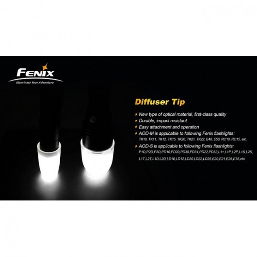 Фильтр Fenix AOD-M совместим по диаметру с фонарями бренда Fenix из серий Е, ТК, LD, SD, RC. Звоните по указанным на сайте телефонам, чтобы уточнить совместимость аксессуара с конкретной моделью фонаря.