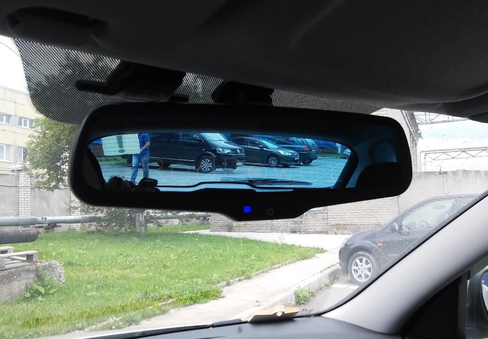 Видеорегистратор выглядит как обычное внутрисалонное зеркало заднего вида. Для того чтобы вызвать меню регистратора - достаточно нажать одну из управляющих кнопок на задней панели зеркала. Управление настройками, так же происходит через кнопки на задней панели устройства.
