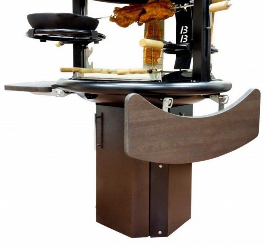 Гриль Lappigrill BBQ оснащен двумя независимыми, оснащенными лифтовым механизмом, платформами. Они с легкостью регулируются по высоте, что позволяет контролировать процесс жарки и готовки. На одной из них находится контактный гриль для жарки стейков. На втором чугунная сковорода, вместо которой можно установить казан.