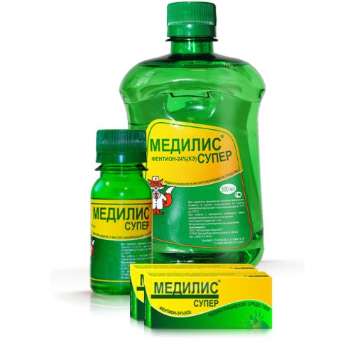 • Лечение педикулеза и уничтожение лобковых вшей. При этом 1 миллилитр средства разводят в 83 миллилитрах воды и наносят на пораженные участки тела при помощи тампона на 20 минут. Потом Медилис тщательно смывают водой с использованием косметических моющих средств и споласкивают уксусом, разведенным водой в пропорции 1:1. Желательно также вычесать густым гребешком остатки погибших вшей и гнид. Чтобы избежать повторного заражения, следует провести обработку головных уборов и подушек.