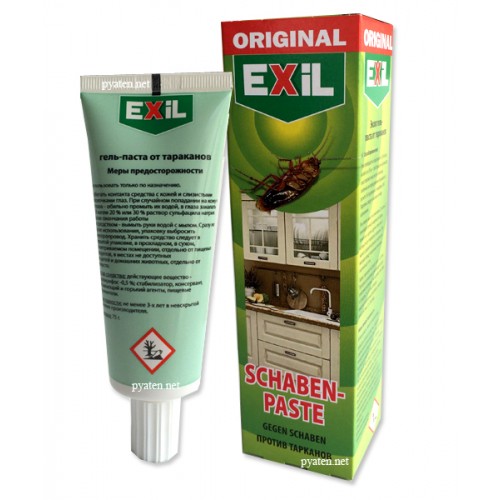 Новый гель Exil (ранее производилось под маркой Globol/Глоболь) Schaben Paste – это гарантированное уничтожение тараканов и других ползающих насекомых в помещениях. Сделано в Германии. Первое и самое популярное средство на российском рынке в виде геля для уничтожения тараканов. Эффективное и самое надежное средство для борьбы с тараканами. Простое и удобное применение.