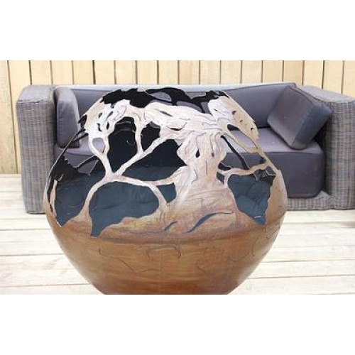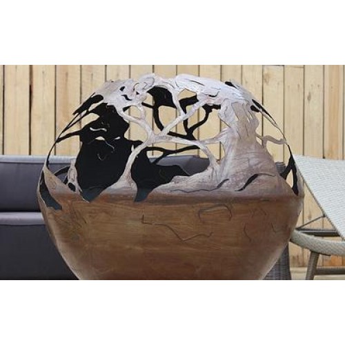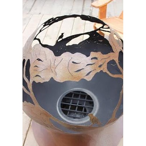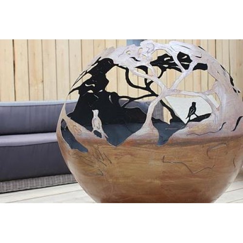 Эта костровая чаша является самым смелым и изысканным решением во всей серии очагов от FireCup. Переплетение филигранно выполненных орнаментов, охватывает всю чашу, образуя шар в форме раскидистой кроны дерева. По бокам этой сказочной конструкции можно увидеть несколько фигурок соловьев, но все остальное – это металлический лес.
