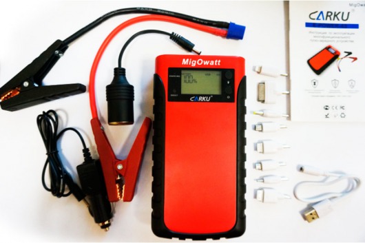 • С его помощью можно запускать двигатель автомобиля или мотоцикла. При полной зарядке устройство гарантирует до 25 запусков.