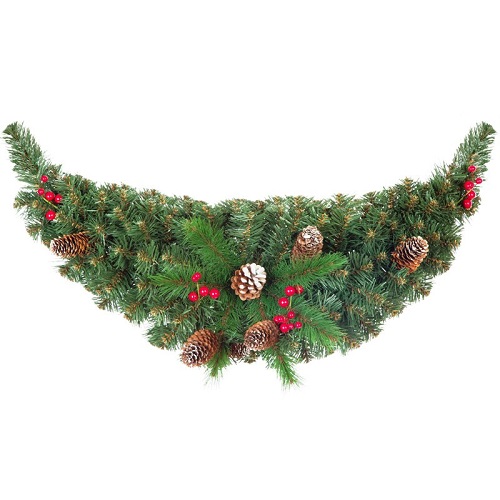 Удивительно красивая новогодняя хвойная гирлянда Элегия принесет в ваш дом или офис новогоднее настроение и будет очень выгодно смотреться в интерьере. Все такие изделия изготавливаются вручную, что делает их поистине уникальными и неповторимыми. На сосновой гирлянде имеются слегка припорошенные снегом еловые шишки и веточки рябины, такие аксессуары придают некоторую изюминку гирлянде.