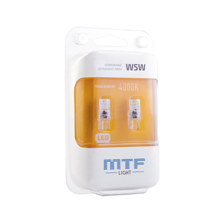 Светодиодные лампы MTF-Light VEGA W5W/T10 4000K – такие лампы работают намного эффективнее, характеризуются более мощной светоотдачей. И все это – без применения радиатора.