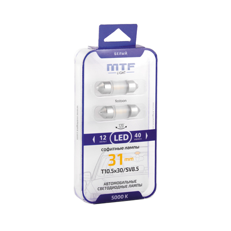 Светодиодная лампа MTF-Light C5W 5000K с рассеивающей линзой – такие лампы работают намного эффективнее, характеризуются более мощной светоотдачей. И все это – без применения радиатора.