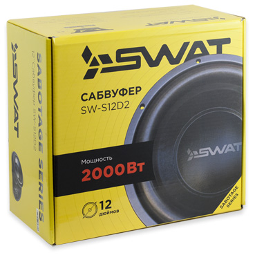 Сабвуферный динамик SWAT SW S12D2 предназначен для использования в фазоинверторных и закрытых корпусах. Прочная  корзина из штампованной стали надежно защищает от повреждений. Особый жесткий диффузор, изготовленный из непрессованной целлюлозы, эффективный пылезащитный колпачок и звуковая катушка обеспечивают как механическую прочность сабвуфера в целом, так и стабильность его характеристик.