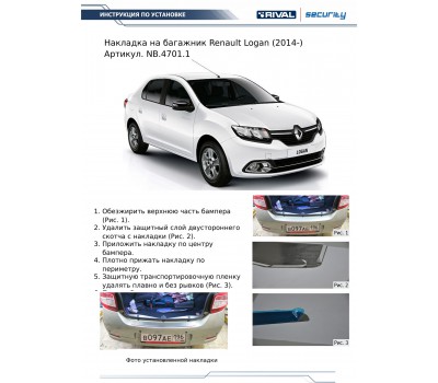 Накладка на багажник для Renault Logan от 14 г.в. (Rival)