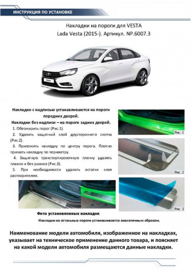 Вопросы и отзывы про Накладки на пороги для Lada Vesta от 15 г.в. (Rival)