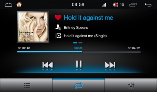 В аудиотракте мультимедийной системы использован 11-полосный эквалайзер. Встроенный усилитель мощностью 4x45 Вт построен на MOSFET транзисторах, а для любителей более мощного звука предусмотрены линейные выходы - фронт, сабвуфер.