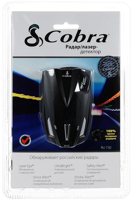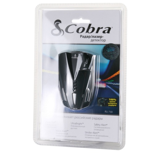 Радар-детектор Cobra RU 730 представляет собой относительно недорогой прибор, который разработан специально для использования на территории России и стран СНГ. Помимо звукового и визуального оповещения, которые стали уже традиционными для подобных устройств, аппарат имеет встроенный голосовой синтезатор, благодаря которому реализована функция голосового оповещения. Данная модель по праву занимает одно из первых мест в линейке радар-детекторов Cobra. Радар-детектор способен улавливать сигналы таких современных полицейских радаров, как Беркут, Визир, Сокол и Бинар.