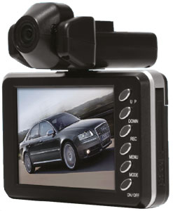 Основными особенностями являются наличие двух видеокамер и TFT ЖК-дисплей диагональю 2.8 дюйма для воспроизведения видео. Одна камера фиксирует события, которые происходят перед автомоблем, а вторая - те, которые в салоне. Причем камера в салоне поворачивается на на 270°. Вы можете просматривать записи, не подключаясь к компьютеру, прямо на дисплее регистратора. Тем более, что качество съемки Вас порадует. Видеосъемка может производиться в следующих разрешениях: 1920x720 и 1280x460. Запись звука происходит синхронно с записью видео.