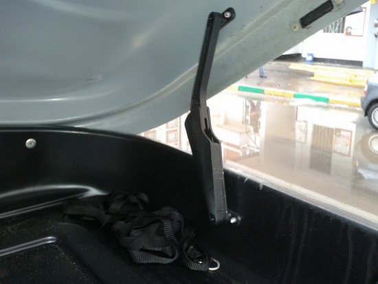 Данный автомобильный багажник оборудован 2-х точечным центральным замком, т.е. блокируется в двух местах автобокса для более надежной сохранности багажа. Закрыв бокс, вы сможете вынуть ключ только в том случае, если бокс надежно заперт, благодаря этому он никогда не раскроется во время пути.