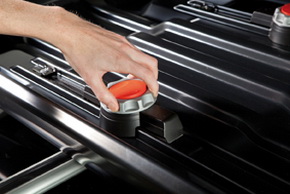 Металлические профили в днище придают дополнительную жесткость конструкции. Благодаря этому можно увеличить нагрузку. 3-х точечный центральный замок гарантирует сохранность вашего багажа. Закрыв бокс, вы сможете вынуть ключ только в том случае, если бокс надежно заперт, благодаря этому он никогда не раскроется во время пути.