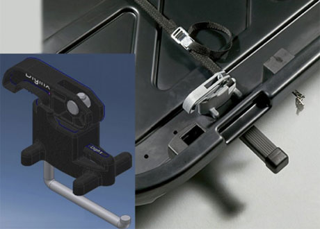 Модель оборудована центральным 2-х точечным замком, который не даст вам достать ключ из бокса, если он будет закрыт неплотно, поэтому отсутствует риск его произвольного открывания во время пути. В местах крепления имеются дополнительные резиновые уплотнители, которые  препятствуют попаданию влаги и грязи.