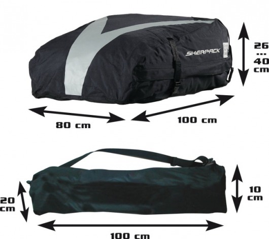 Грузовой мягкий бокс SHERPACK (размером 100x80x40 см) предназначен для перевозки вещей. Мягкий бокс на крышу обладает всеми свойствами обычного багажного бокса, но при этом мало весит и не требует дополнительного места для хранения. Он весьма удобен и практичен, поскольку сделан из прочного непромокающего материала. Все швы и застежки-молнии герметичны и обеспечат защиту ваших вещей от промокания.