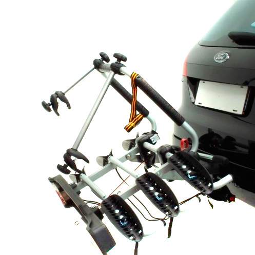 Велосипедное крепление порадует Вас легким монтажом и демонтажем посредством специального рычага. Велосипедный багажник оснащен держателями для фиксации рам велосипедов, повторителями задних фонарей и дополнительным номерным знаком. Крепление отодвигается и при этом освобождает доступ к багажнику. Эта существенная особенность позволяет избежать дискомфорта при транспортировке велосипедов.