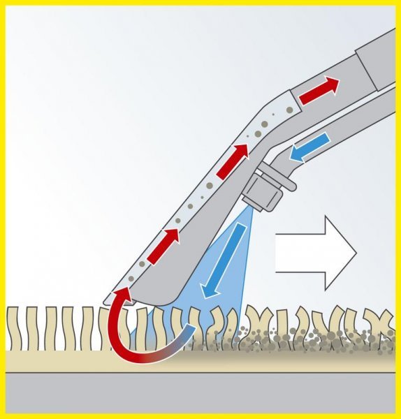 Принцип работы пылесоса не сложен: под давлением моющий раствор разбрызгивается по поверхности, а затем всасывается вместе с загрязнением. А если Вы чистите ковры, то параллельно распрямляется ворс. Приобретая Karcher SE 4001, Вы превращаете уборку в удовольствие!