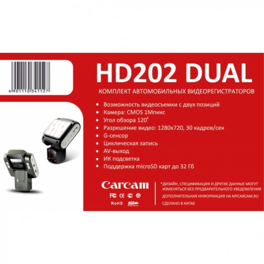 Видеорегистратор Carcam HD 202 Dual - это новейшая модель бортового самописца с 2-мя камерами, записывающими одновременно. Прибор оснащен встроенным TFT-дисплеем, G-сенсором и отличается высоким качеством видео.