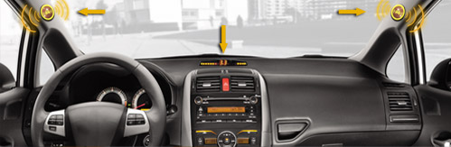 Четыре датчика парковки устанавливаются в передний бампер и четыре - в задний. Все данные, полученные от них, отображаются на LED-индикаторе. Если впереди обнаружено препятствие, система Вас известит. Вы убережете свой автомобиль от повреждений, сделав необходимый маневр. Парктроник идеально подходит для высоких моделей машин, у которых ограничен обзор.