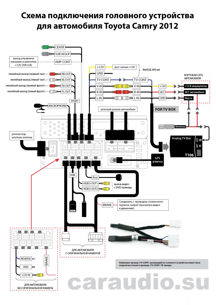 ВНИМАНИЕ! Данная магнитола предназначена для безусилковой комплектации TOYOTA Camry. Для автомобиля, в штатной комплектации которого есть оригинальный усилитель JBL, используется модификация данной магнитолы INCAR CHR-2291 JB