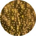 Световой занавес размером 2,4х6 метров, с прозрачными светодиодами тёплого постоянного свечения. Для внутреннего применения. Гирлянда-бахрома состоит из 25 нитей по 57 ламп. Вы сможете соединить между собой до 4 штук. Сделайте ваш праздник еще более ярким и чудесным.