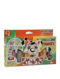 В набор входят: 6 классических красок + 3 трафарета (лев, бабочка, рыбка) + кисточка.