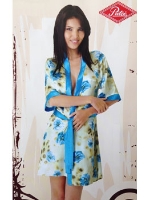 - Шикарный халат средней длины с прозрачными кружевными вставками в виде нежных цветов в зоне плеч и на манжете рукава.