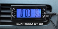 Индикация температуры. 2 варианта подсветки - синяя и оранжевая. Питание термометра происходит от батареек. Подсветка работает от гнезда прикуривателя. Индикация времени, функция будильника.